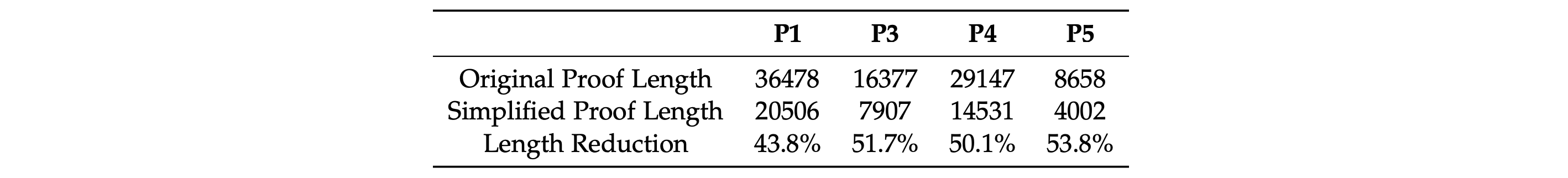 Evaluation Metrics: For each original proof and its k candidates for simplification, we measure the length of each valid candidate. We report two metrics: